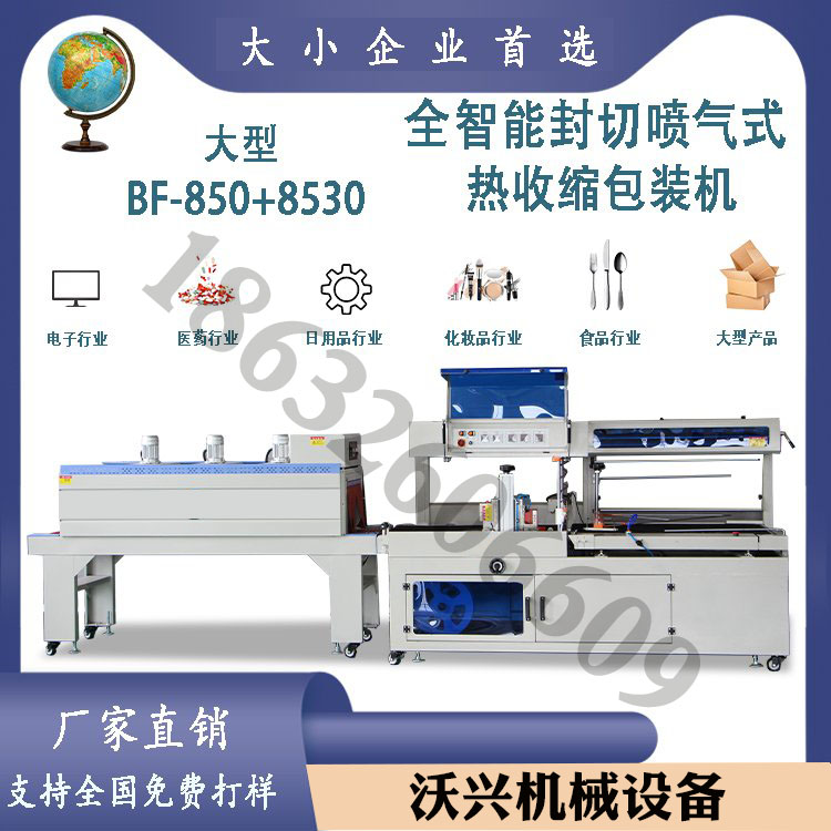 熱收縮膜包裝機工藝流程:1、設定好全自動熱收縮包裝機加熱時間2、 按下全自動熱收縮包裝機手動按鈕后,調節包裝產品的袋子大小,包裝完成改為自動按鈕,接上流水線自動工作。